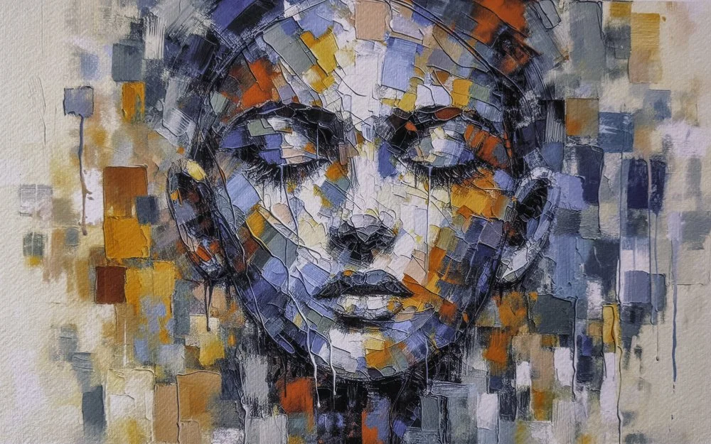 Das Bild entstand zuerst aus diesem Schweigen. Der Text folgte später, als Versuch, den Weg dorthin nachzuvollziehen: zu verstehen, was geschieht, wenn Farbe übernimmt, was Worte nicht mehr halten können.